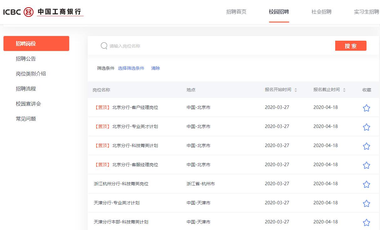中国工商银行股份有限公司校园招聘网站