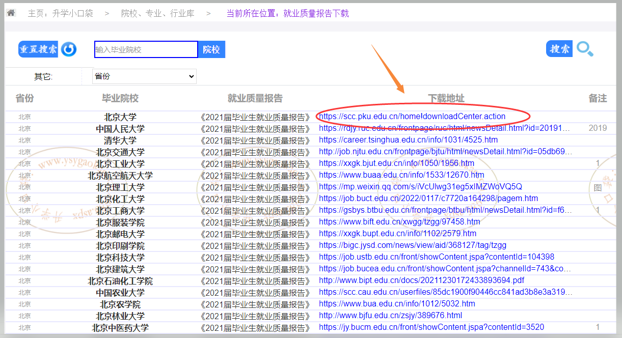 3、就业质量报告查询网页,可输入高校名称进行快速查询,点击链接即可查看/下载有关数据