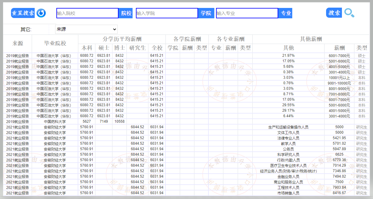 《毕业生薪酬》数据查询,功能上线!数据来源于高校就业质量报告、或其他机构统计,该数据持续更新中...