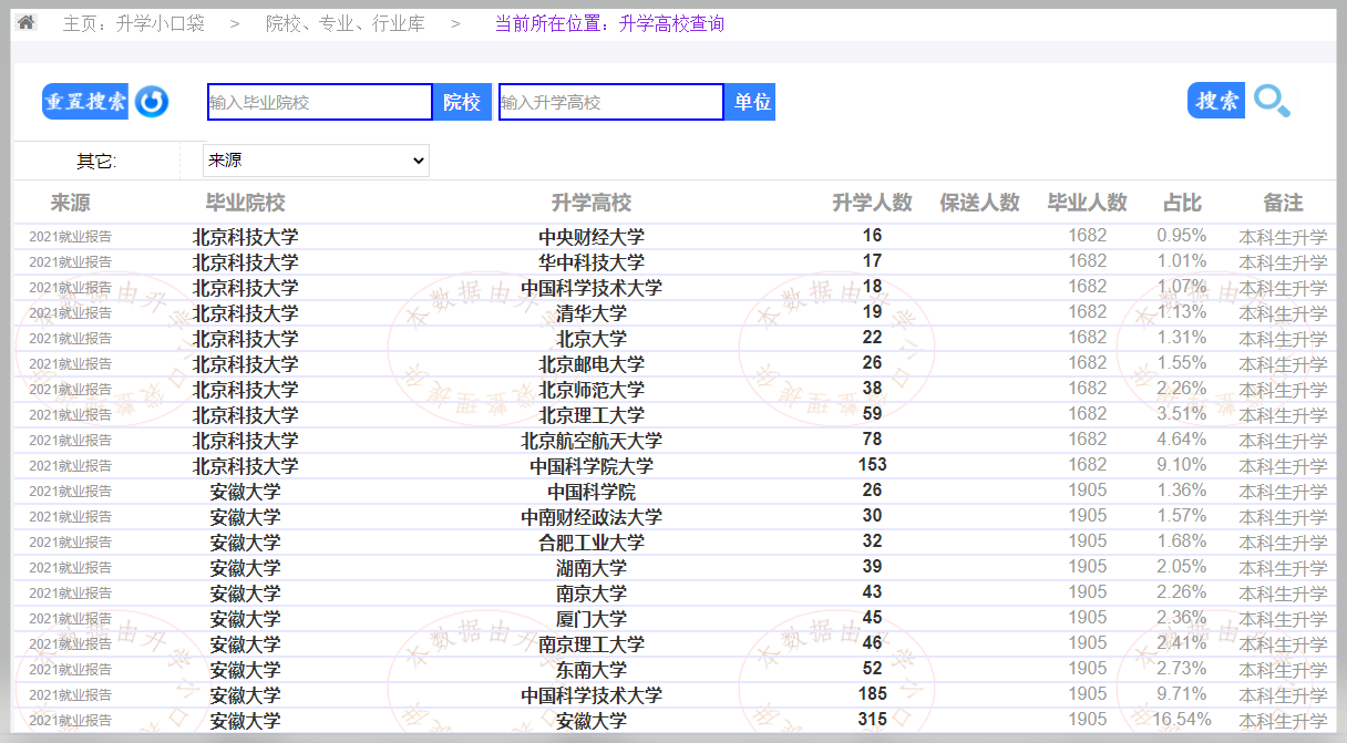 《本科生升学高校》数据查询,功能上线!数据来源于高校就业质量报告,该数据持续更新中...