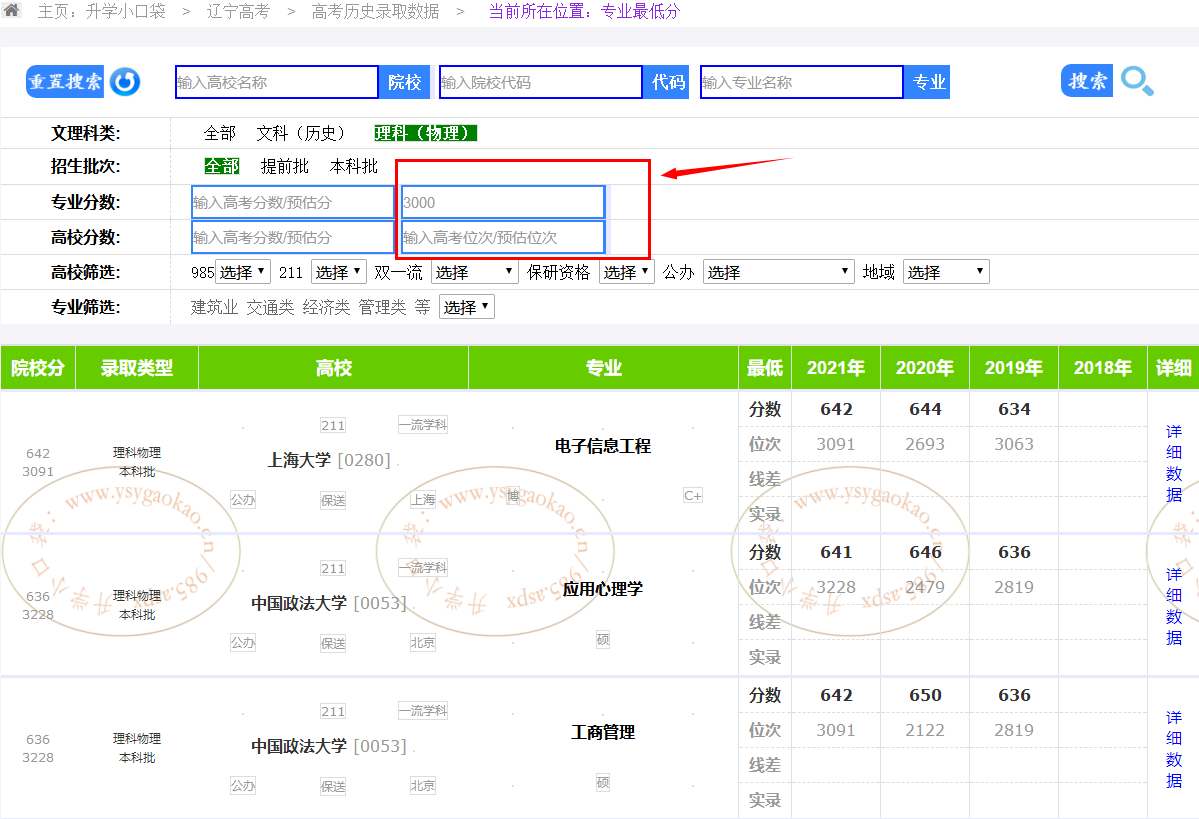 输入全省排名之后,不要再输入高考分数,会影响筛选结果。建议利用全省排名选择