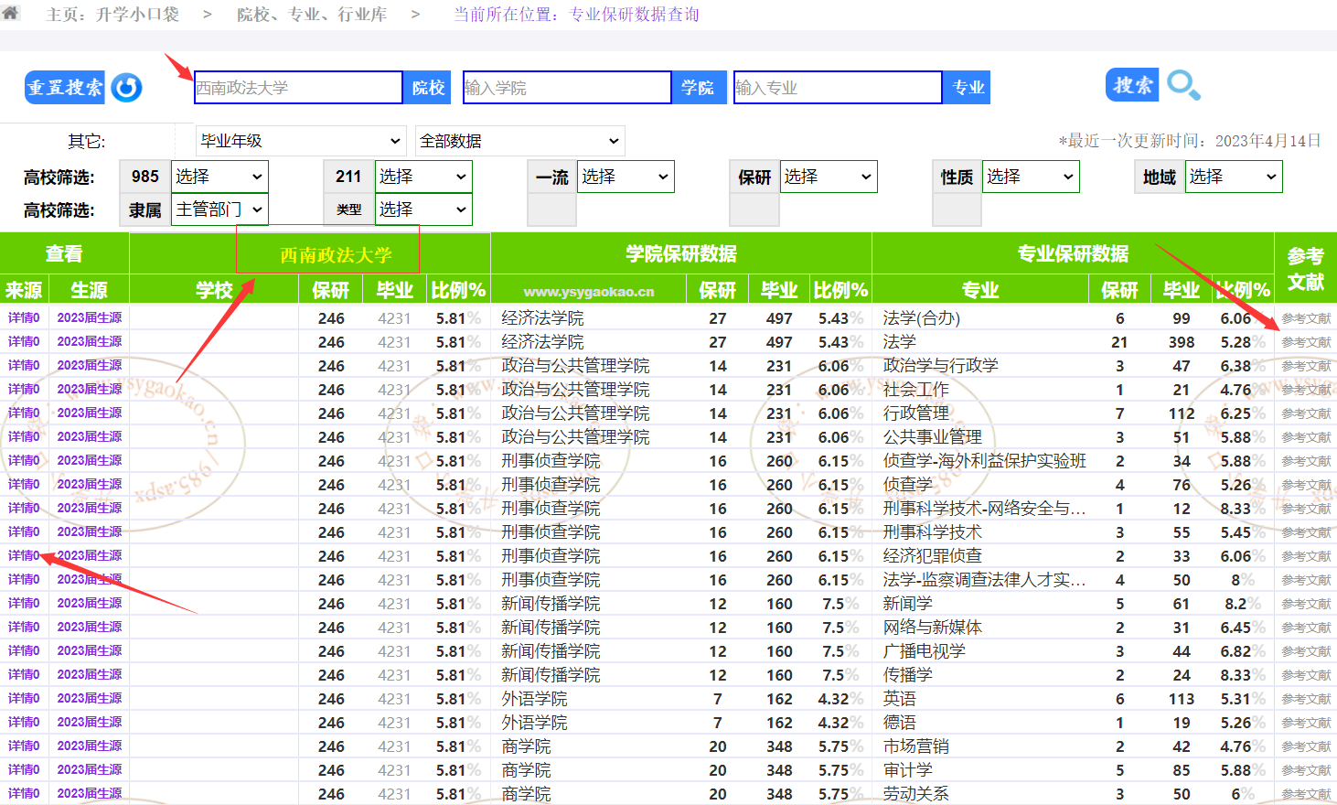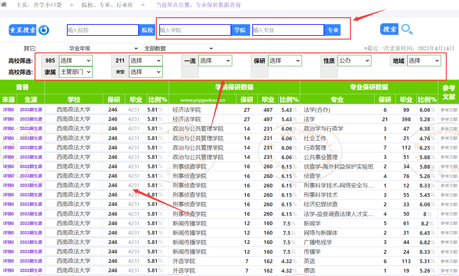 单独搜索院校,也想要显示院校信息的时候,请选择高校性质为公办,或者院校保研高校即可。