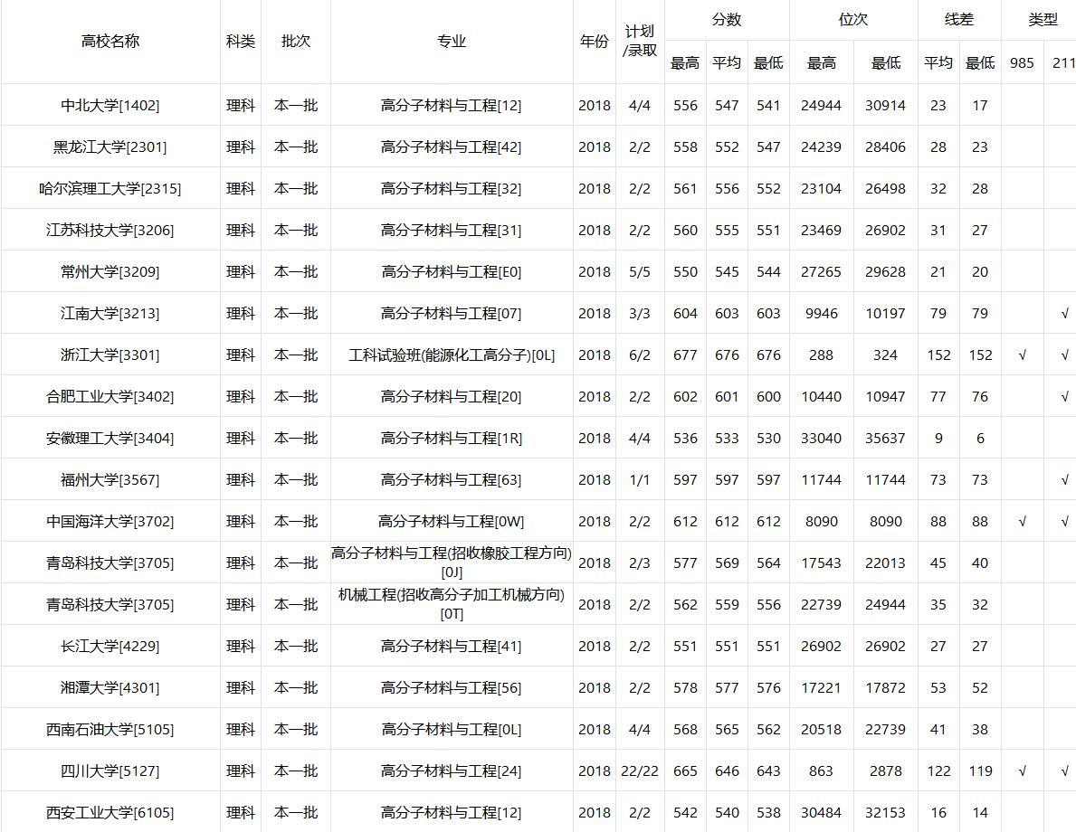 高分子搞得比较好的大学是北大、浙大、吉大,各有各的长处;华南理工实际应用搞得非常好,和国内一些企业有很多技术合作;西北工大的复合材料很牛;背岛科技大学的橡胶困内一流;南开的功能高分子不错;北化据说是全国高分子的龙头,具体不清楚实力,但高分子的加工机械很厉害。理论研究方面,复旦比较好;北京科技大学的材料学以新材料与新技术为特色,这是材料学领域最“吃香”的方向;我们浙江大学培养的是研究型人才,以高新技术材料为特色,可以说断江大学是国内高分子的鼻祖吧,尤其在合成方面。还有好多好多别的大学,就不一一在这说了。